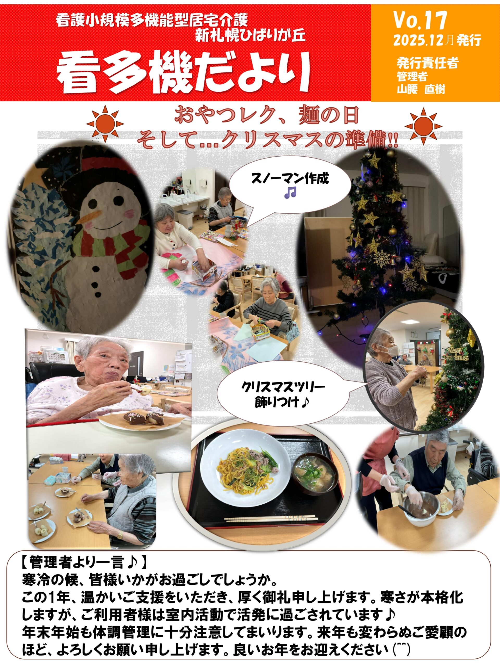 「看多機だより vol.17」を発行、ぜひご覧ください。